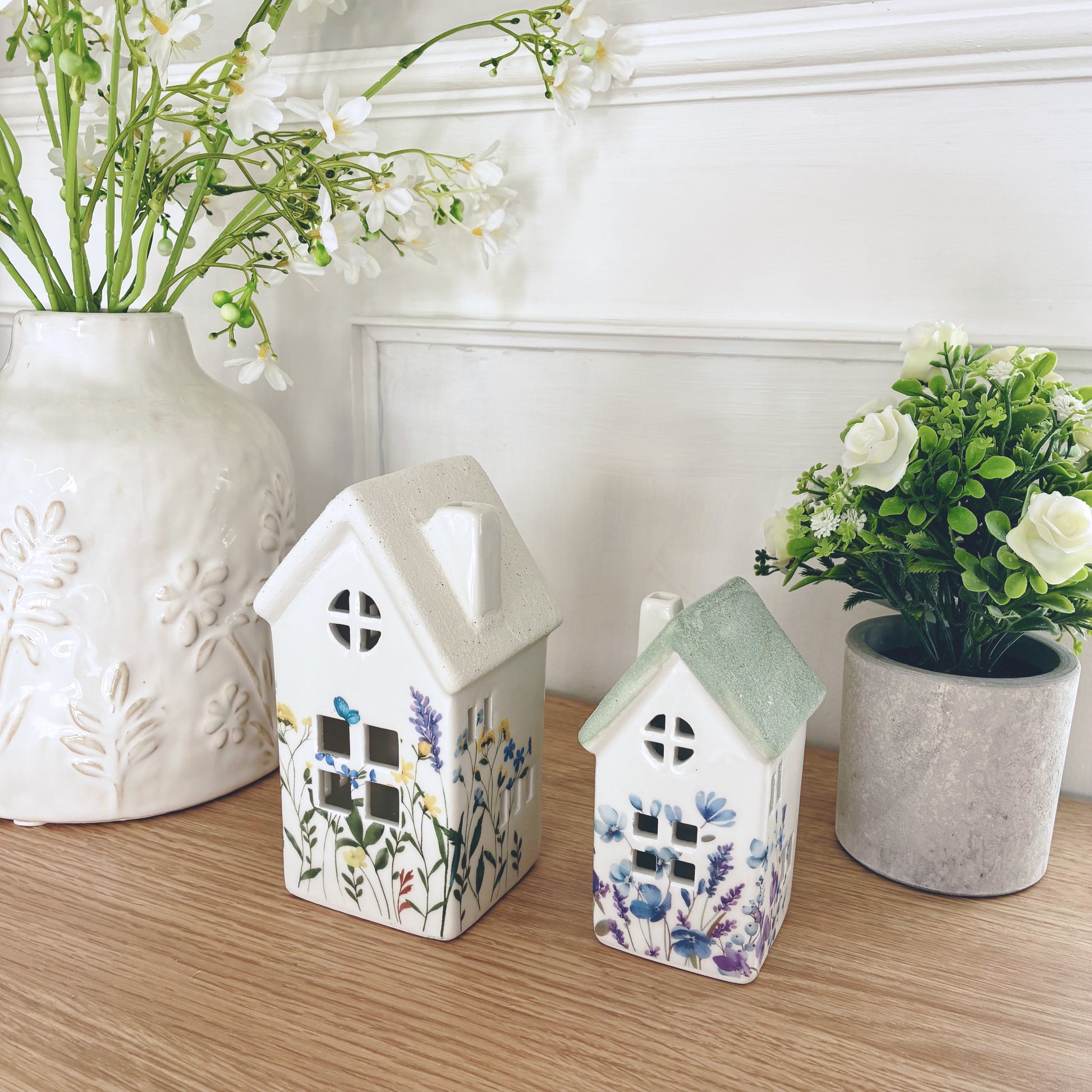 Perfect for styling shelves, console tables, mantelpieces, or coffee tables, the gentle colour palette keeps the look fresh and elegant while blending effortlessly with both modern and classic interiors. The floral accents add subtle texture and character, making it a beautiful standalone piece or part of a layered decorative display.