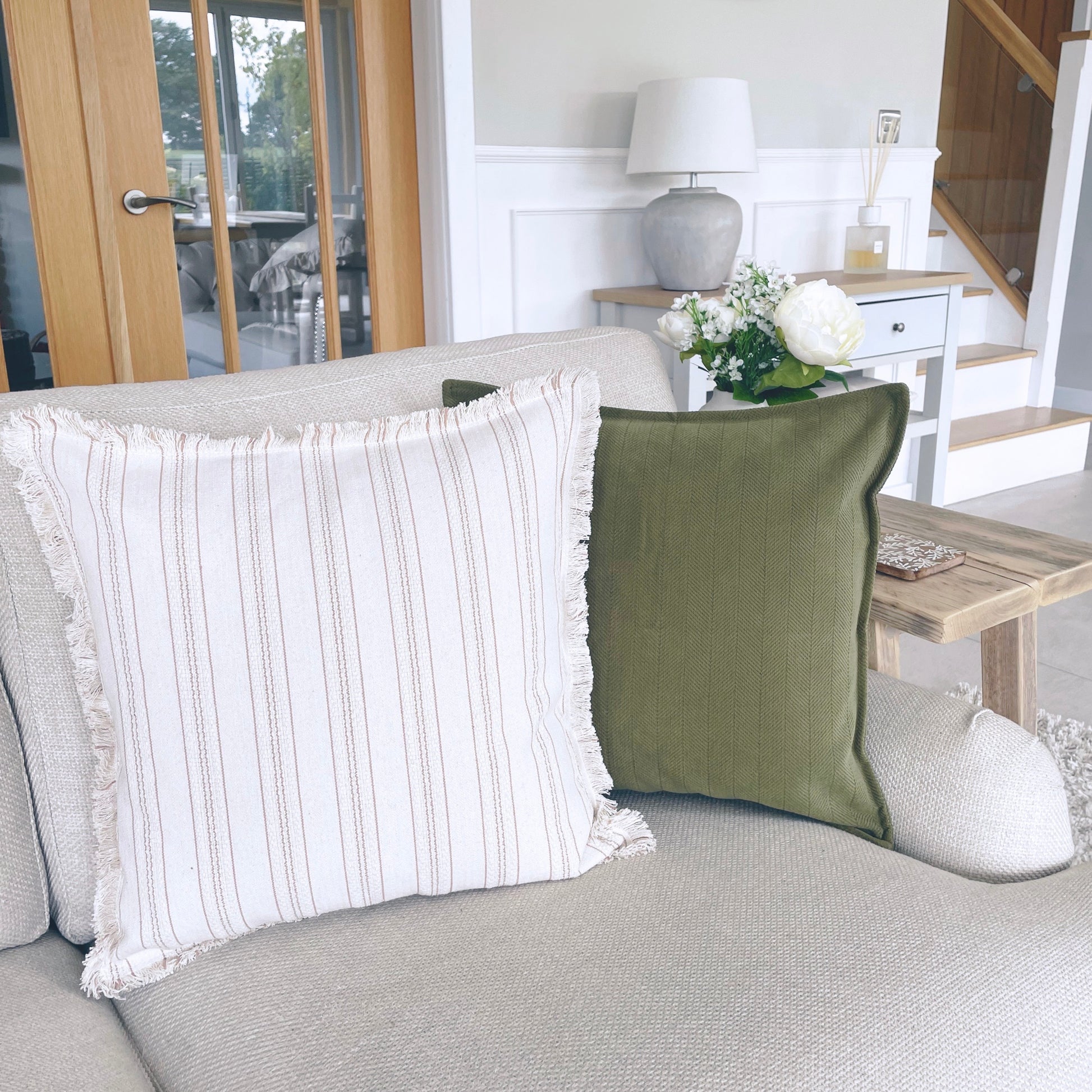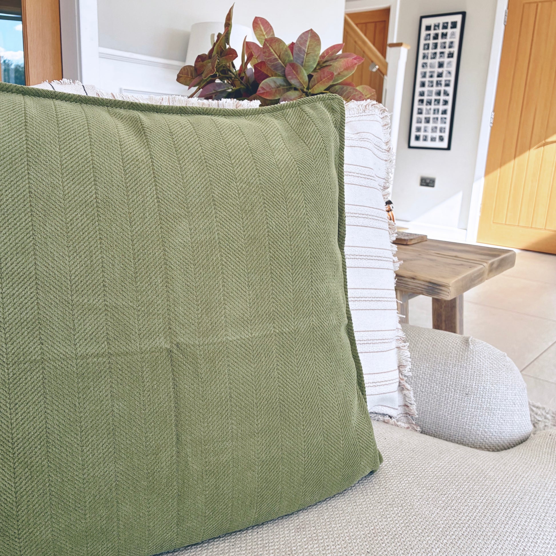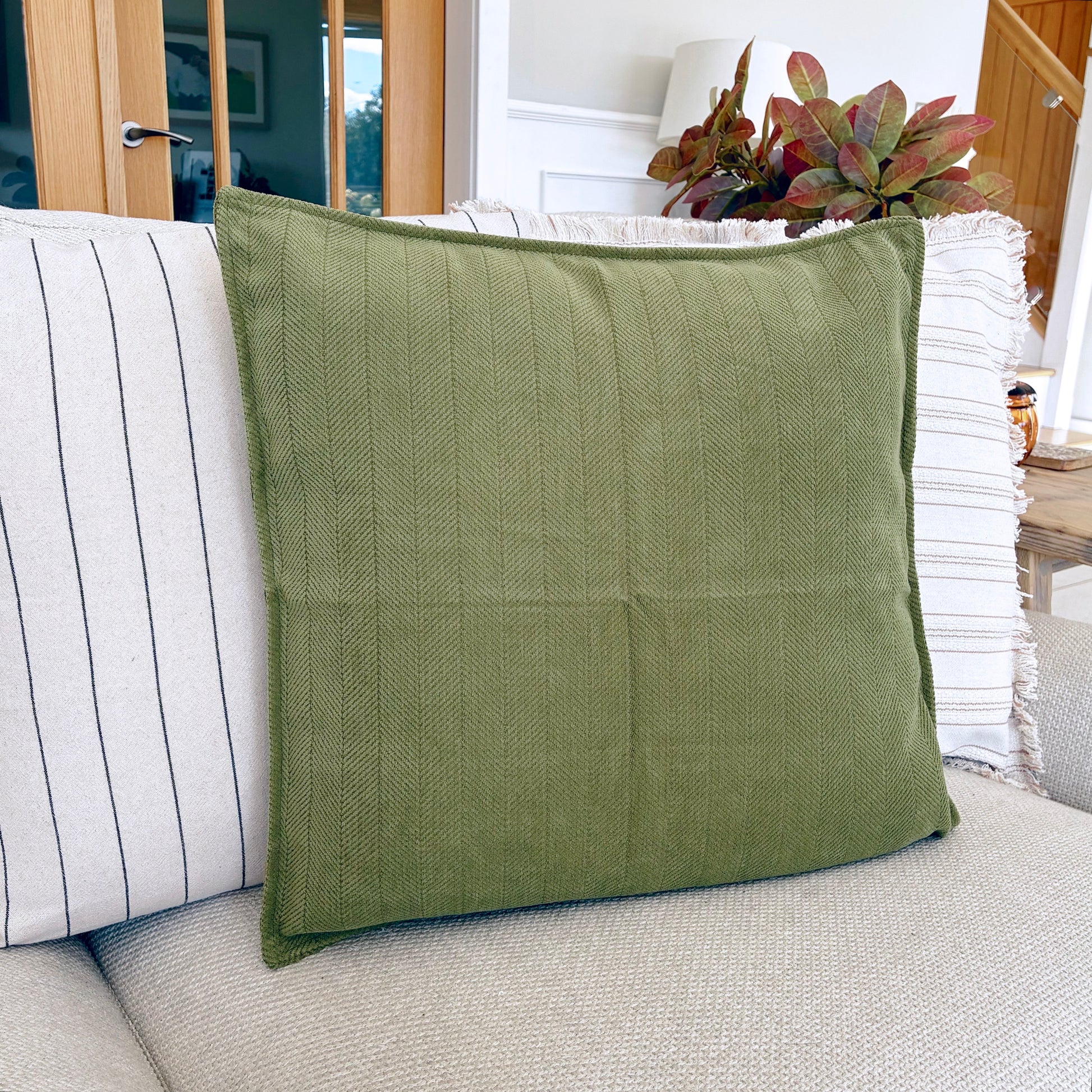 Our dark green cushion has a soft herringbone design adding just a subtle design to the cushion for that luxury touch.