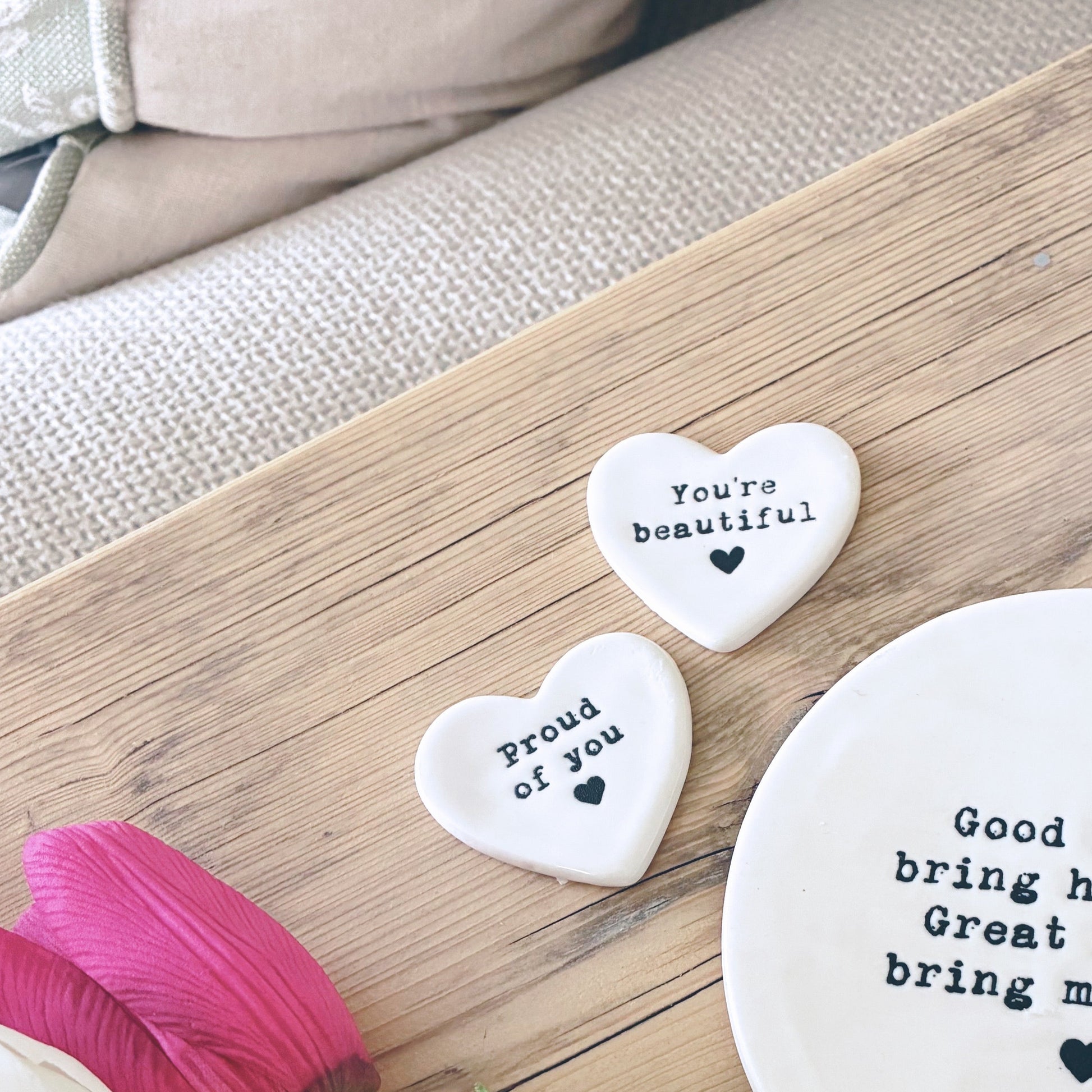 Spread joy and positivity with these charming little heart tokens. Each one features an encouraging phrase, perfect for gifting, keeping on your desk, or scattering around your home as little reminders of love and kindness. A simple way to brighten someone’s day—or your own!