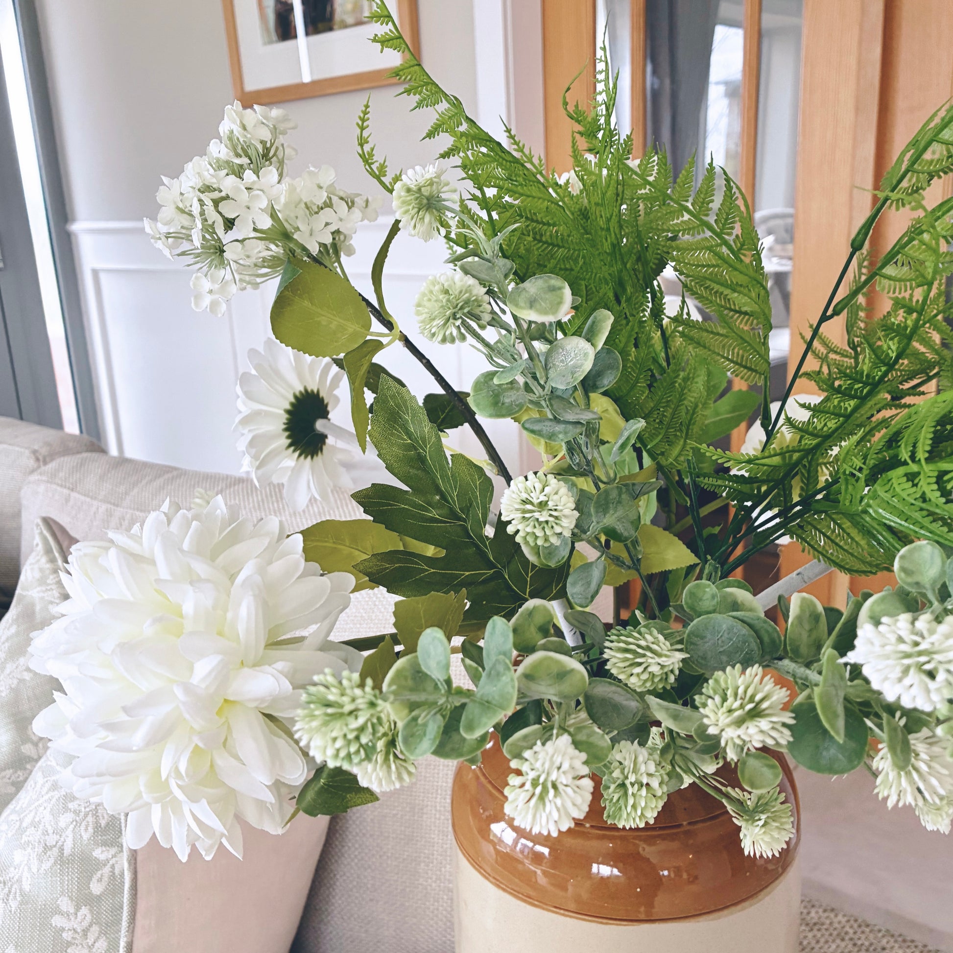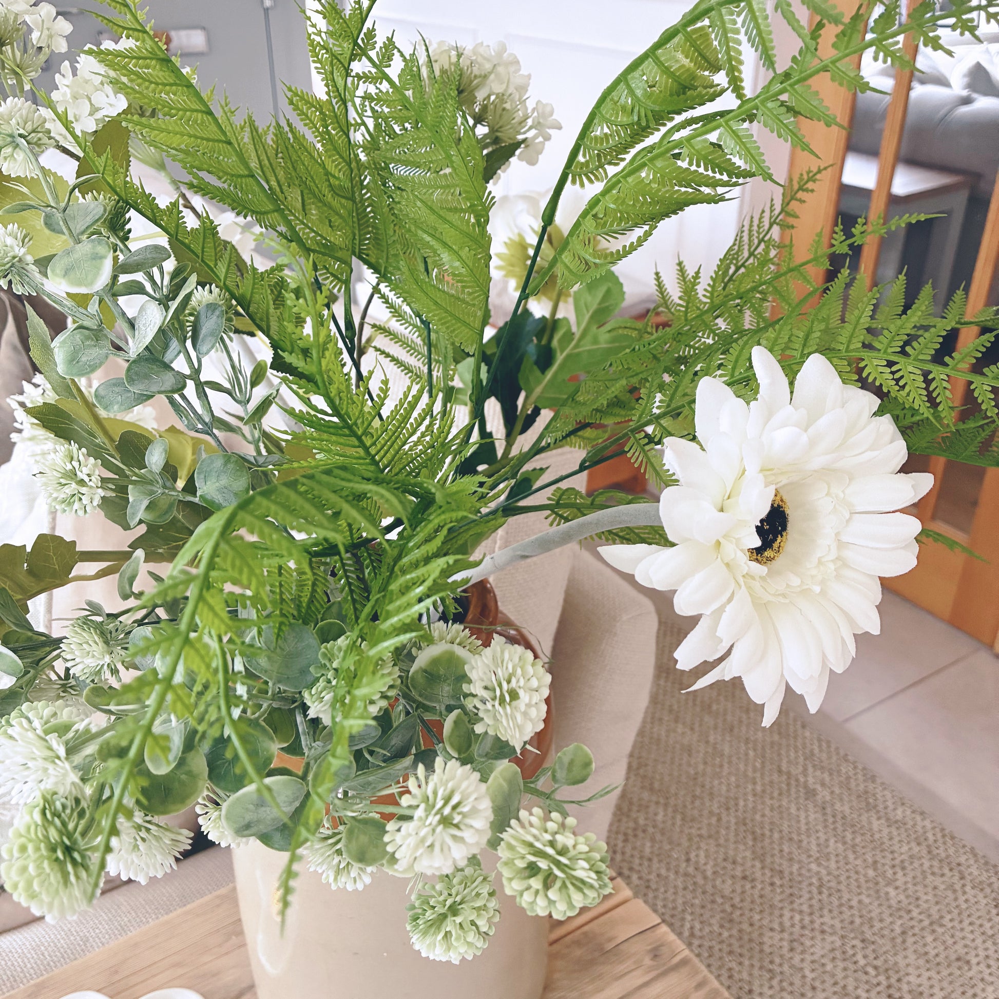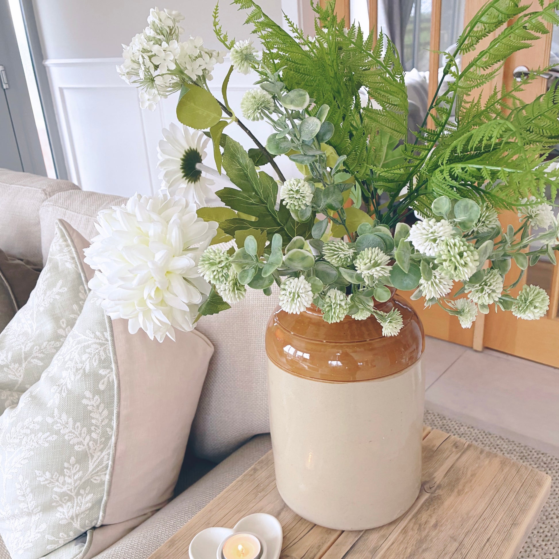 Inspired by the softness of the season, this spring arrangement features a harmonious mix of florals in calm, natural tones. Thoughtfully styled to bring warmth and balance to your space, it adds an effortless, organic touch to shelves, tables, or entryways—perfect for refreshing your home for spring.