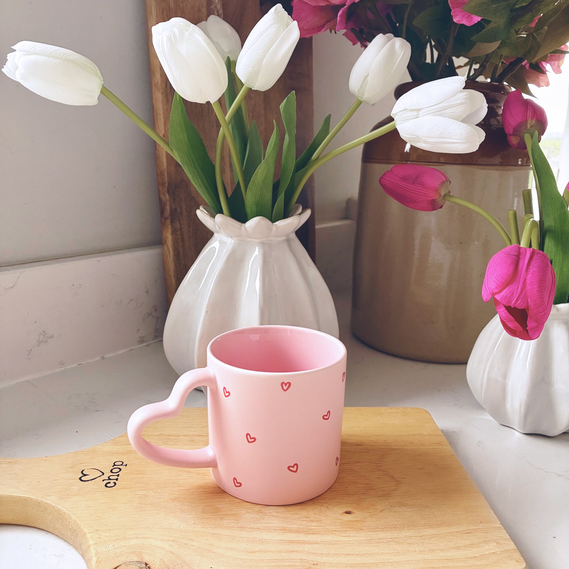 Add a little love to your daily routine with this charming pink heart mug. Crafted in a soft blush tone, it features a beautifully sculpted heart-shaped handle that’s as comfortable to hold as it is eye-catching. Perfect for morning coffee, cosy hot chocolates, or gifting someone special, this mug brings warmth and sweetness to every sip. A delightful statement piece for your kitchen or coffee table.
