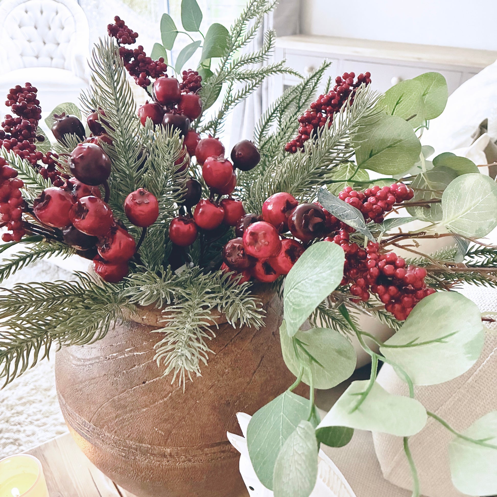 Bring a touch of festive warmth into your home with our Winter Red Berry Faux Flower Spray. Featuring lifelike clustered berries in rich crimson hues, this elegant spray adds a timeless seasonal charm to any arrangement. Perfect for styling in vases, wreaths, or garlands, its realistic texture and long-lasting design ensure effortless beauty all winter long — no maintenance required.